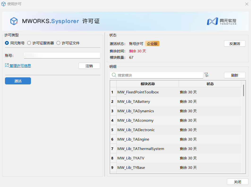 申请成功后,返回 Sysplorer,打开帮助 > 使用许可 > 同元账号,单击激活,企业版 license 激活成功,有效期 1 个月。