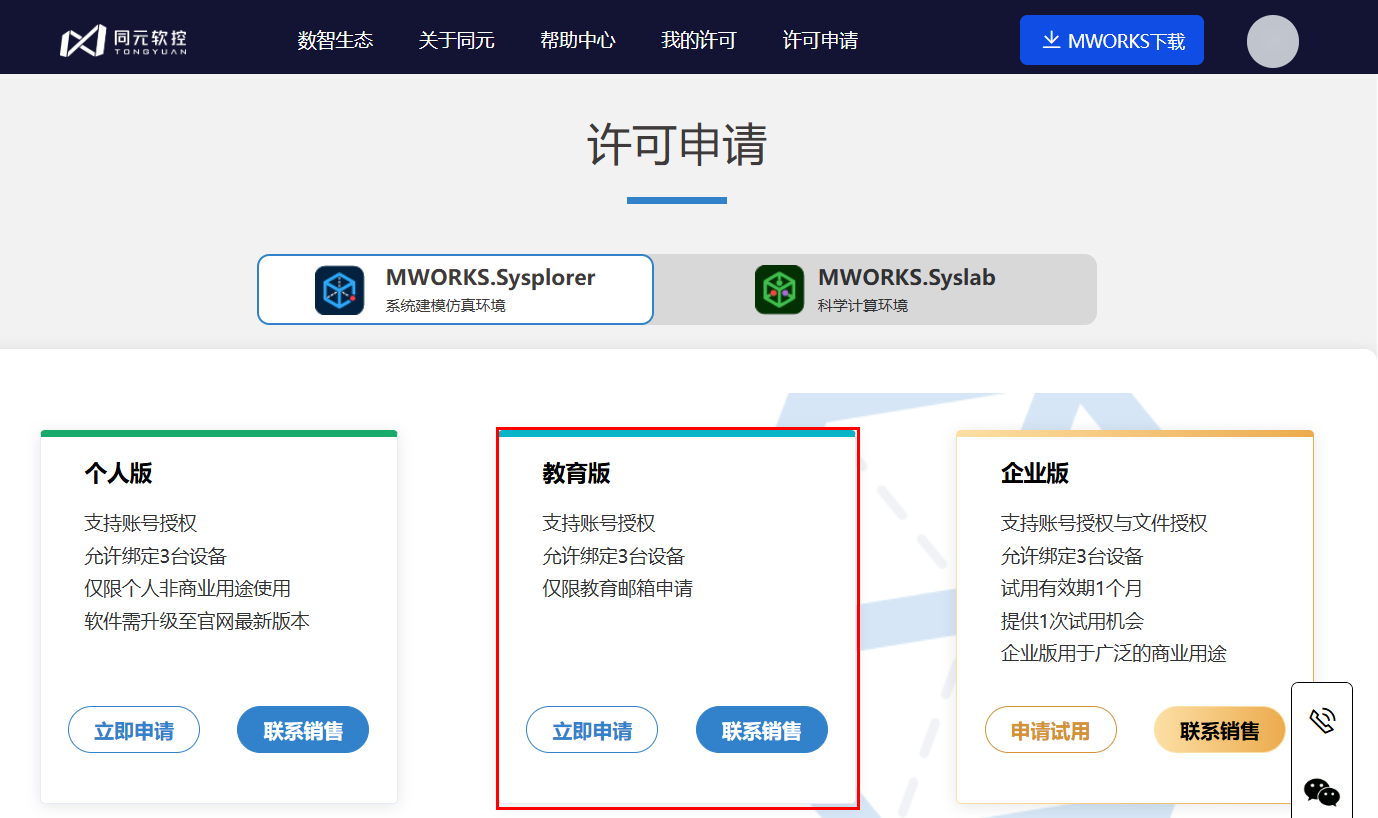 许可申请界面下,单击教育版-立即申请,打开许可申请详情页面。
