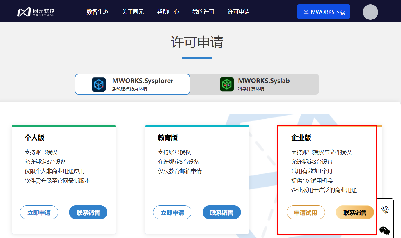 企业版:允许绑定 3 台设备;有效期 1 个月;提供 1 次试用机会;支持申请许可证文件。
