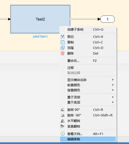 如果您想为一个已经绑定过 Julia 对象脚本文件的 JuliaObject 模块更换脚本文件,可右击该模块,在右键菜单中选择编辑参数。