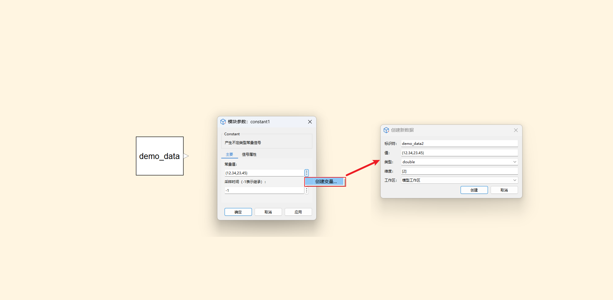 - 在模块参数对话框中快速创建工作区变量