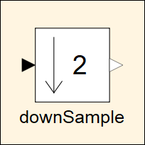 模块通过在输出端口使用比输入端口长的比例帧周期,在较慢的下采样速率下生成输出。对于 M 倍下采样,输出帧周期是输入帧周期的 M 倍,但输入和输出帧大小相等。