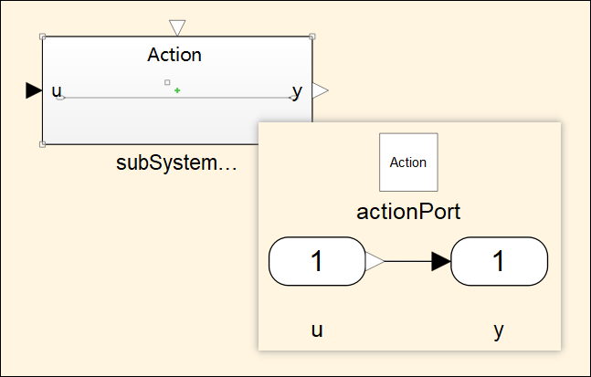 连接到 if 端口的 IfActionSubsystem 会在其关联的表达式计算结果为 true 时执行。