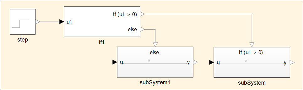 If 模块以及包含 ActionPort 模块的 IfActionSubsystem 模块实现 if-else 逻辑来控制子系统的执行。