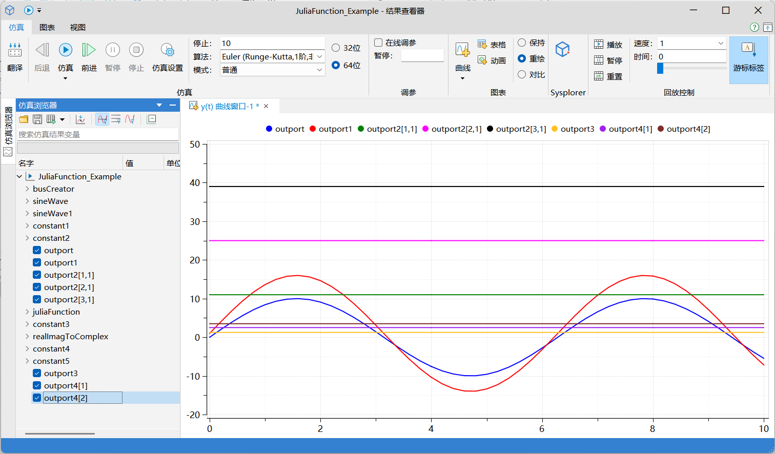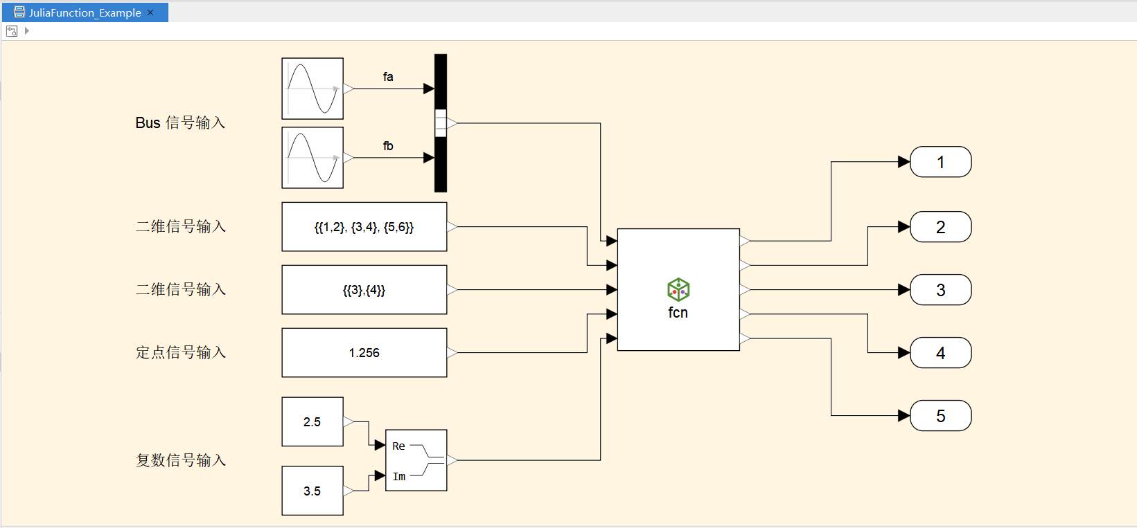 使用 JuliaFunction 可以编写用于 Sysblock 模型的 Julia 函数并将 JuliaFunction 的输入输出数据指定为参数和返回值。