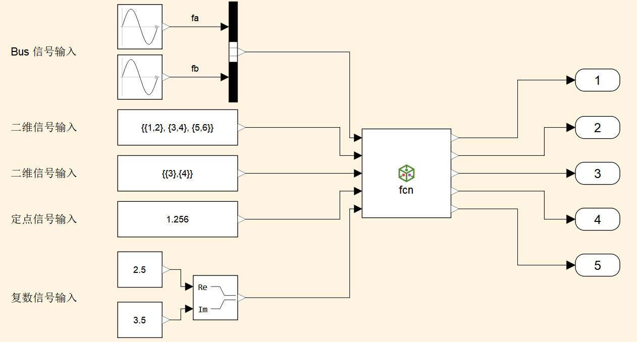 - constant5 模块:生成常量信号,此例中生成的是浮点类型标量;