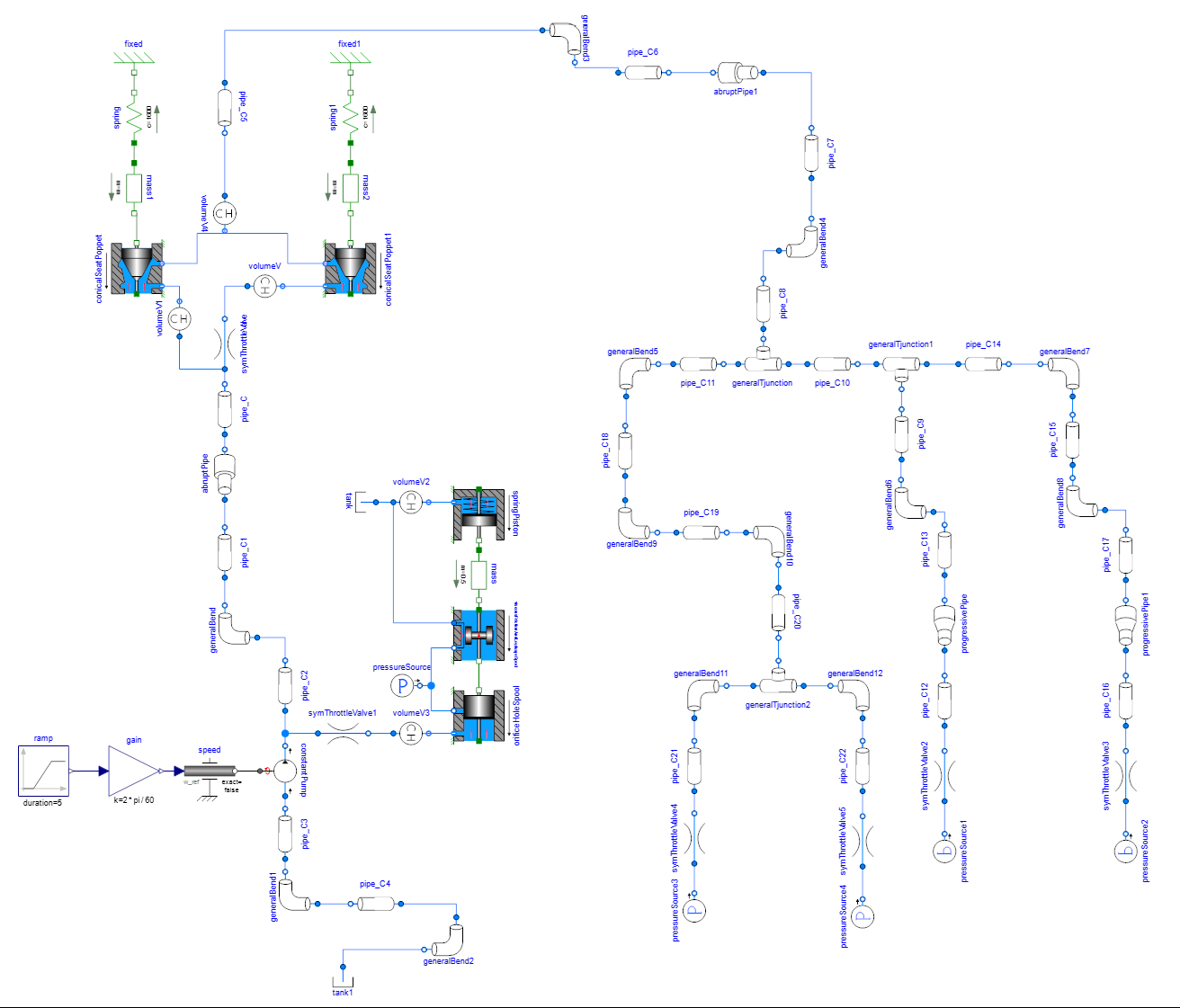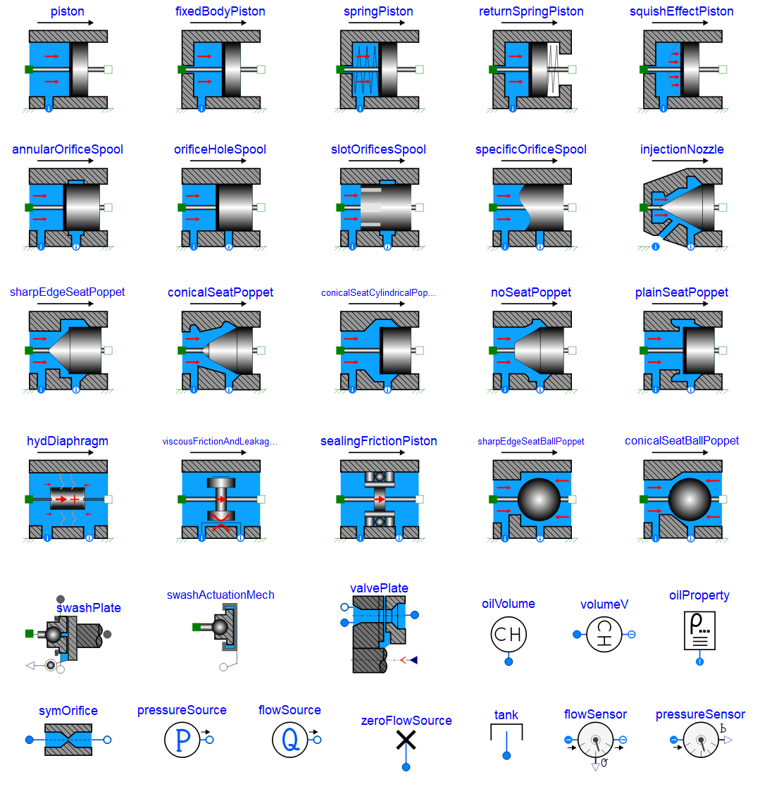 包含多种结构的活塞模型、阀芯模型、喷嘴挡板阀芯模型等,用于自定义设计搭建各种复杂的液压模型。