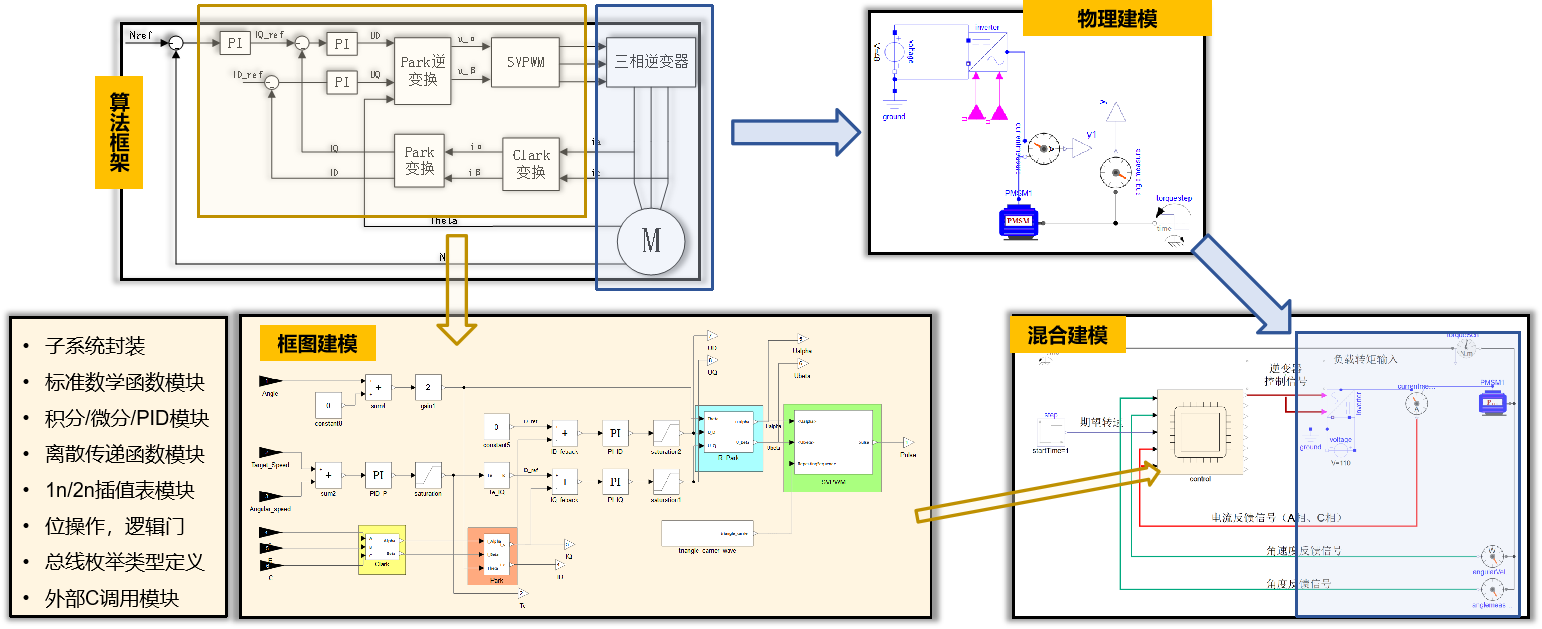 框图建模,旨在支持用于在多领域统一建模规范 Modelica 下进行控制策略的开发、验证和优化,为用户提供全面、高效的控制系统设计与分析工具。控制算法支持自验证的同时,也支持连接物理被控对象模型进行闭环验证。