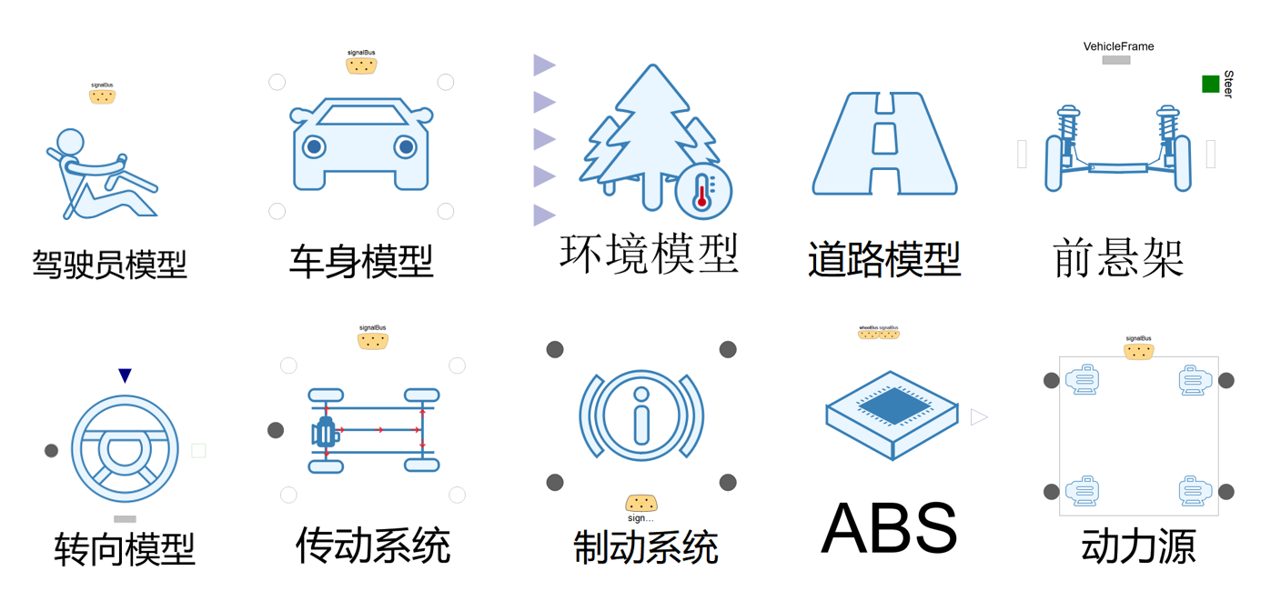 | Vehicle | 车辆模型 | 提供车辆整车模型,涵盖传动,车身,转向,悬架,制动等系统,配有对应案例 | |