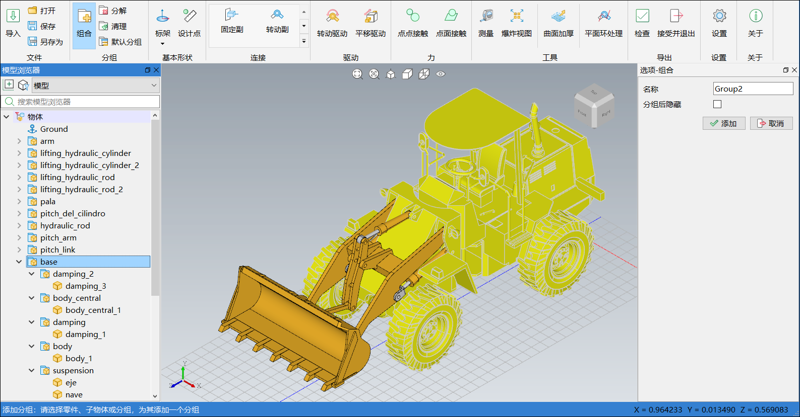 将 CAD 模型导入工具后,需要将不产生相对运动的零部件组合为一个整体,即分组。