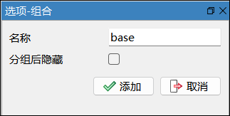 在弹出的选项-组合窗口中,名称字段输入