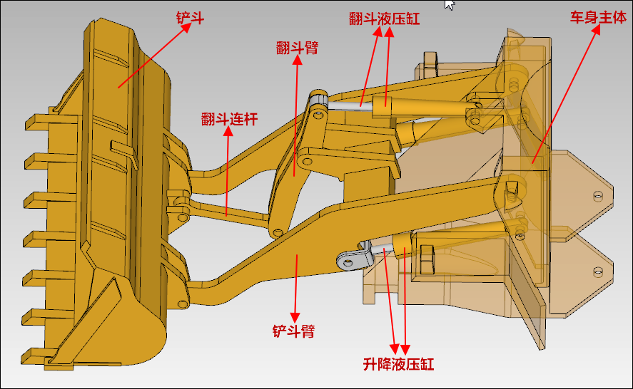 - 打开铲运机铲斗机构模型