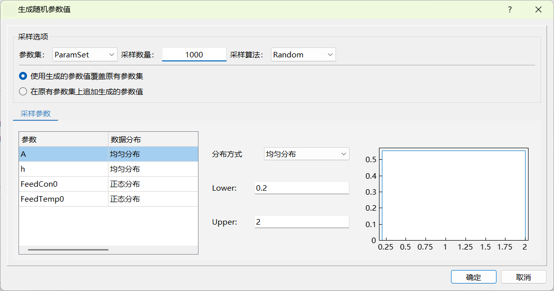 的数据分布类型为均匀分布,设置其下界为 0.2、上界为 2; - 设置参数