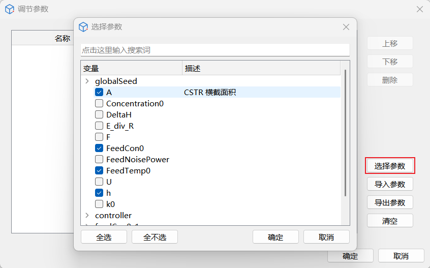 ,并打开 CSTR.mainCSTR,然后在工具栏中单击敏感度分析图标打开敏感度分析工具箱。# 选择调节参数