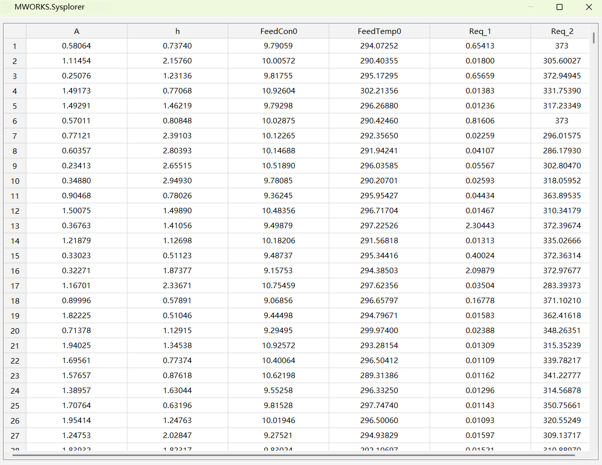 按照上述要求设置完参数后,单击确定即可生成一个参数可编辑表,你可以在可编辑表中手动(双击)修改某个参数的任意采样数值。