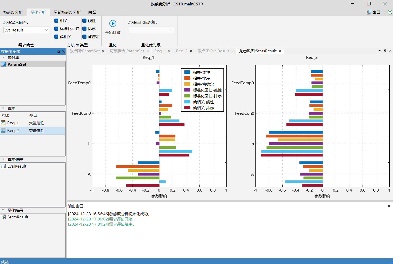 单击工具栏中的选择需求项,可以选择需要进行评估计算的需求,这里需求全选;之后,单击敏感度分析工具栏中的开始计算,以对创建的两个需求进行评估,待计算结束之后,得到如下结果。