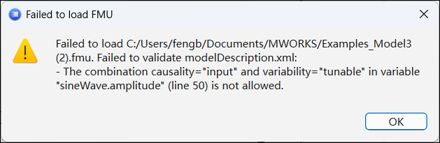 如果 FMU 验证失败,会弹窗提示: