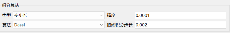 - 若算法类型为变步长,则该项为初始积分步长,默认继承仿真设置中的初始积分步长。