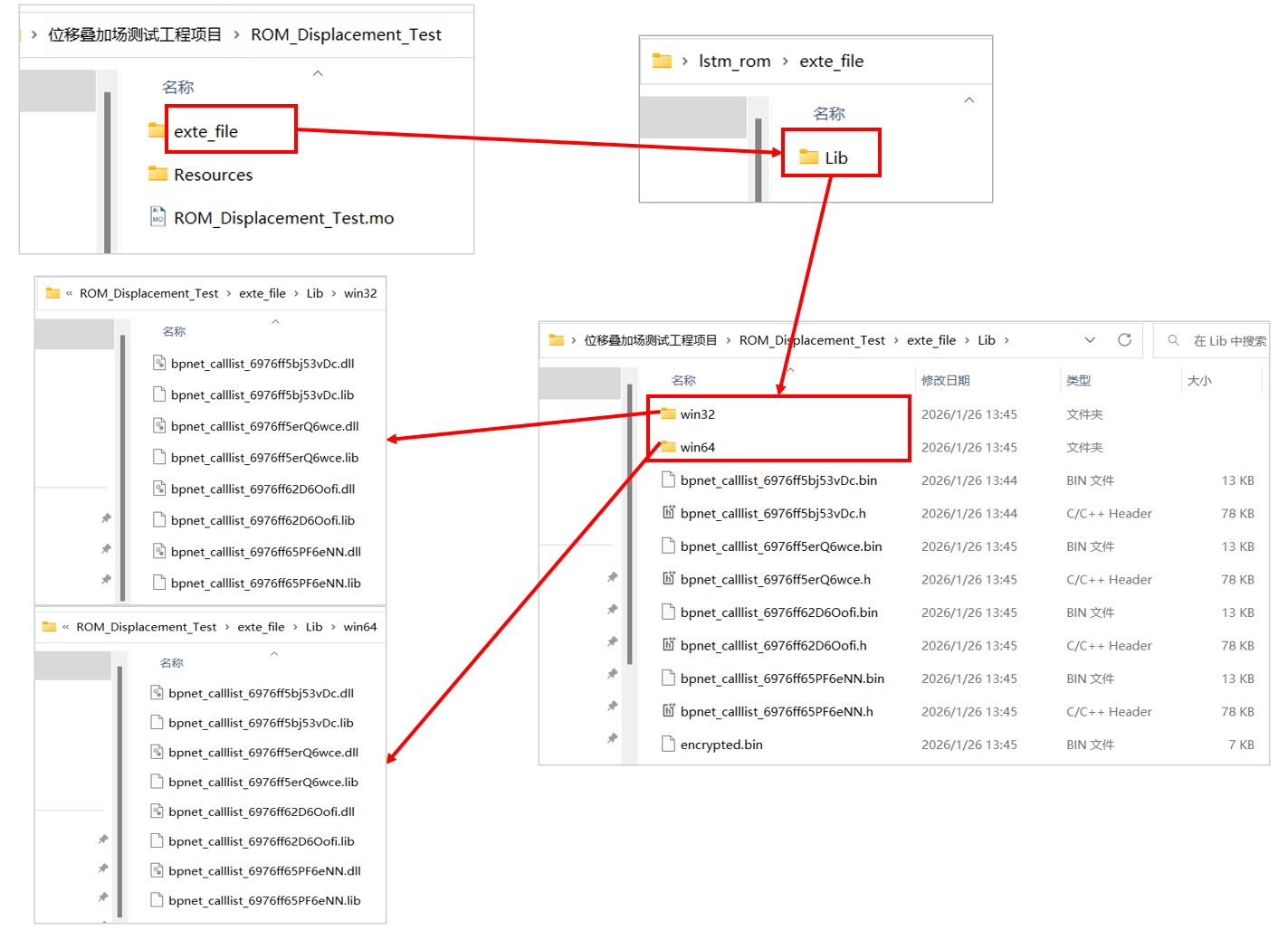 Win32 和 Win64 内的静态库和动态库文件名都相同,用户在选择不同位数的仿真时进行分别调用。