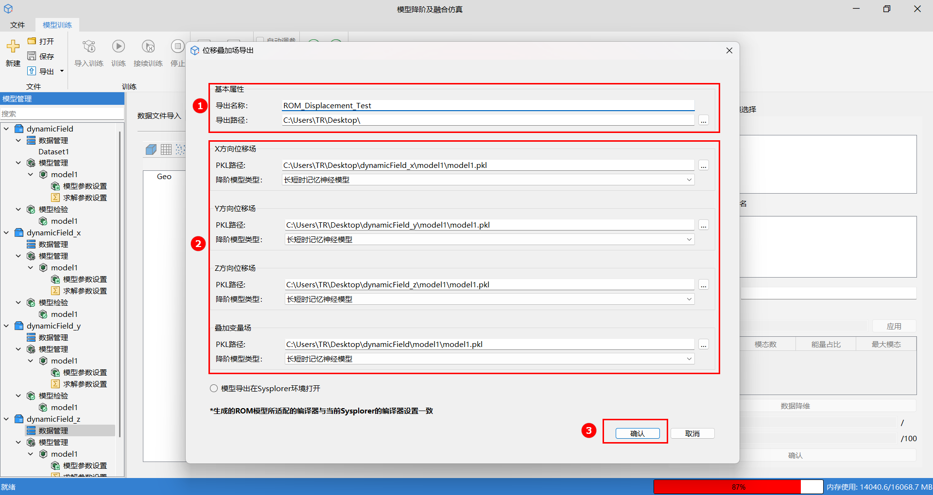 - Y 方向位移场:设置 PKL 文件路径以及降阶模型类型;