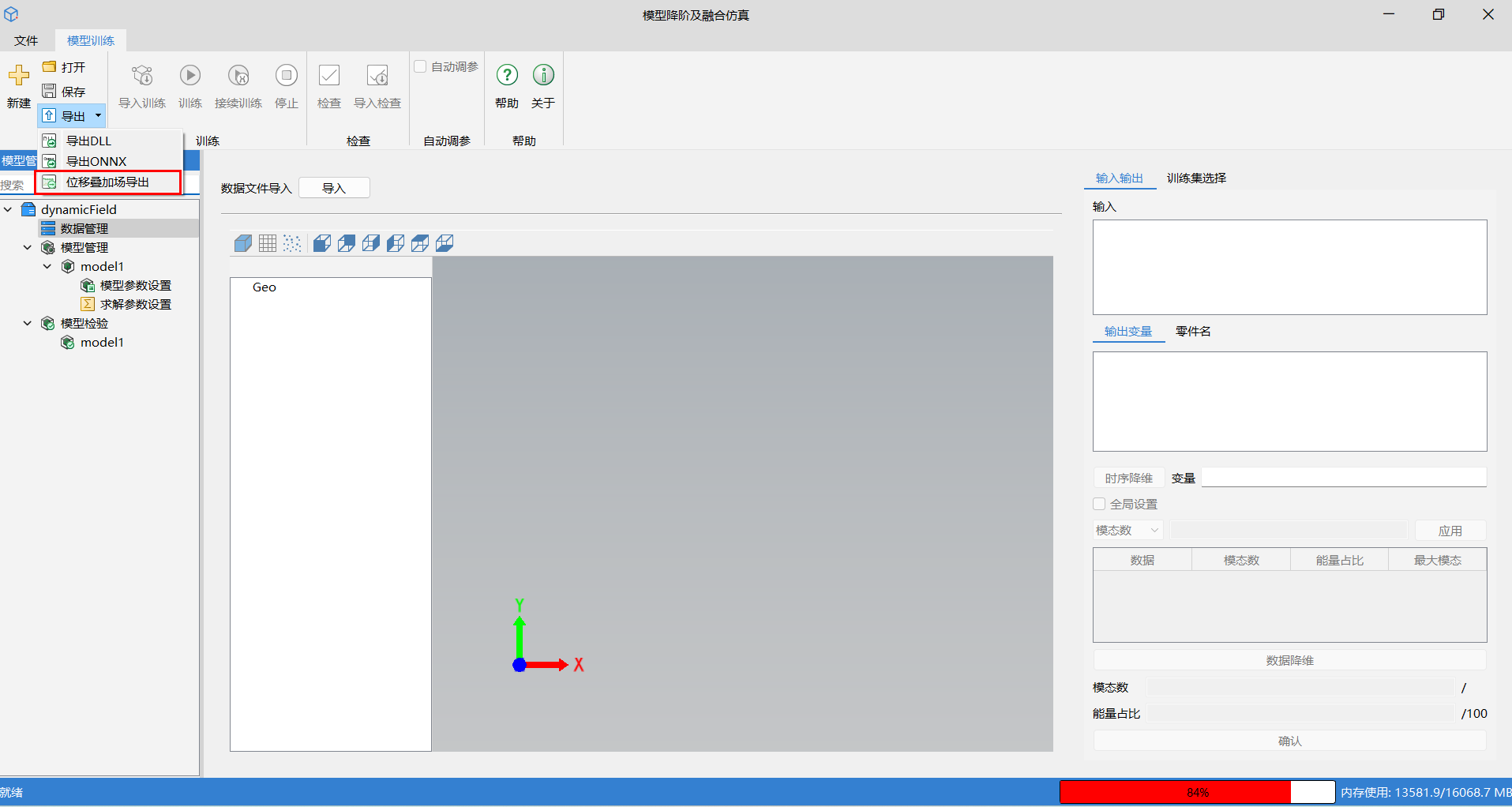 - 当前项目为场降阶项目时,才可以选择导出位移叠加场模型;