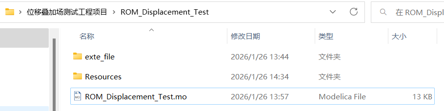 导出的位移叠加场模型文件夹整体结构与场模型导出结果相似,包含位移叠加场的 mo 模型,exte_file 文件夹以及 Resources 文件夹。