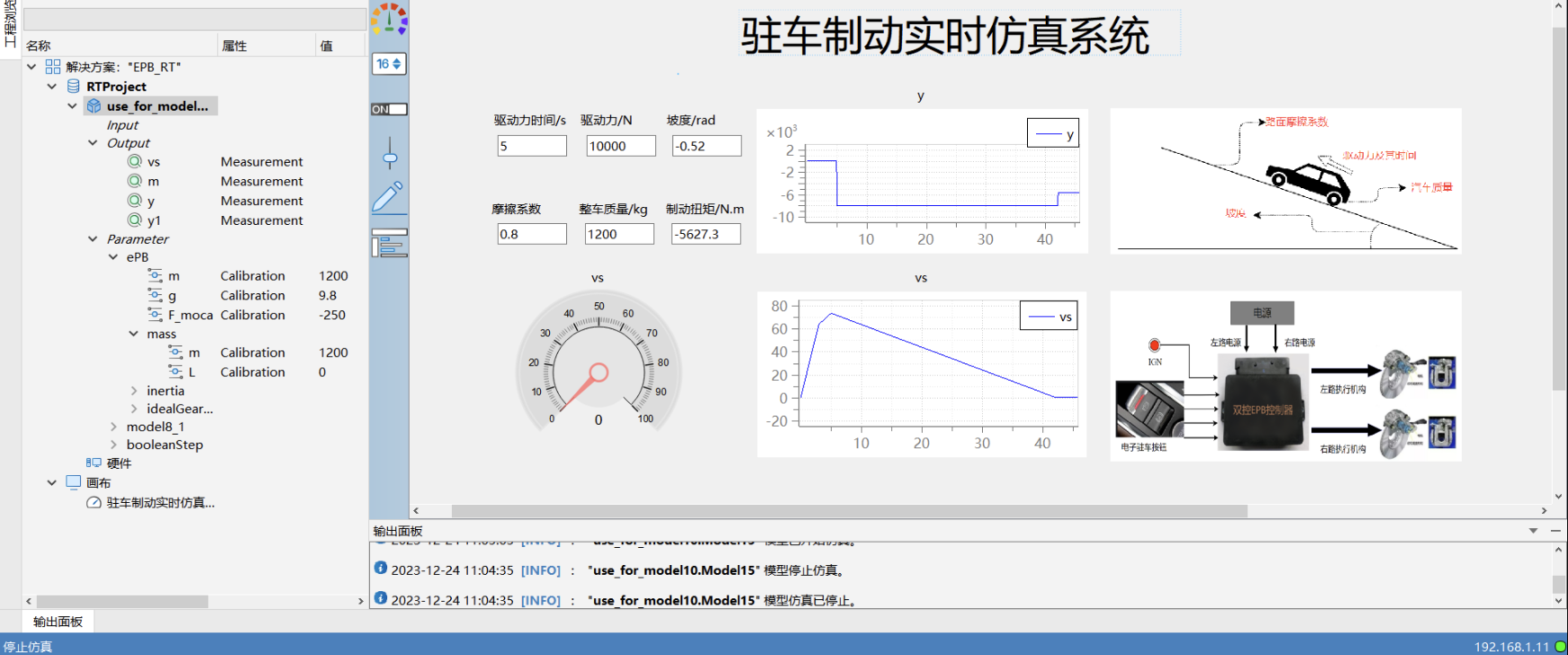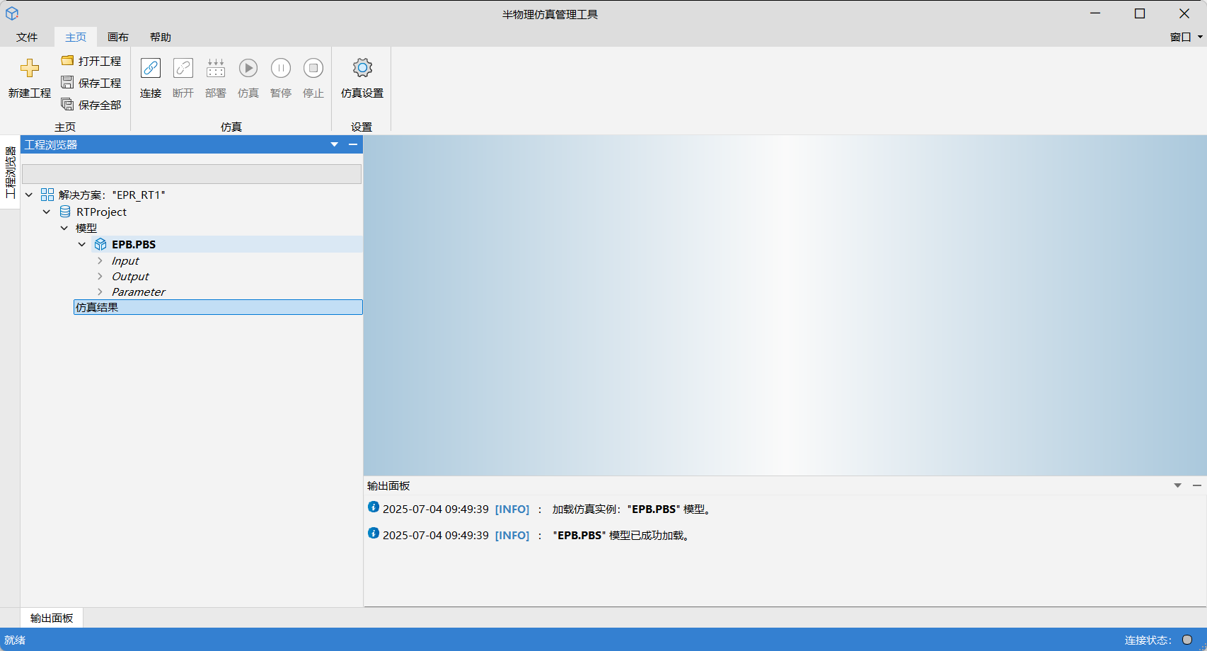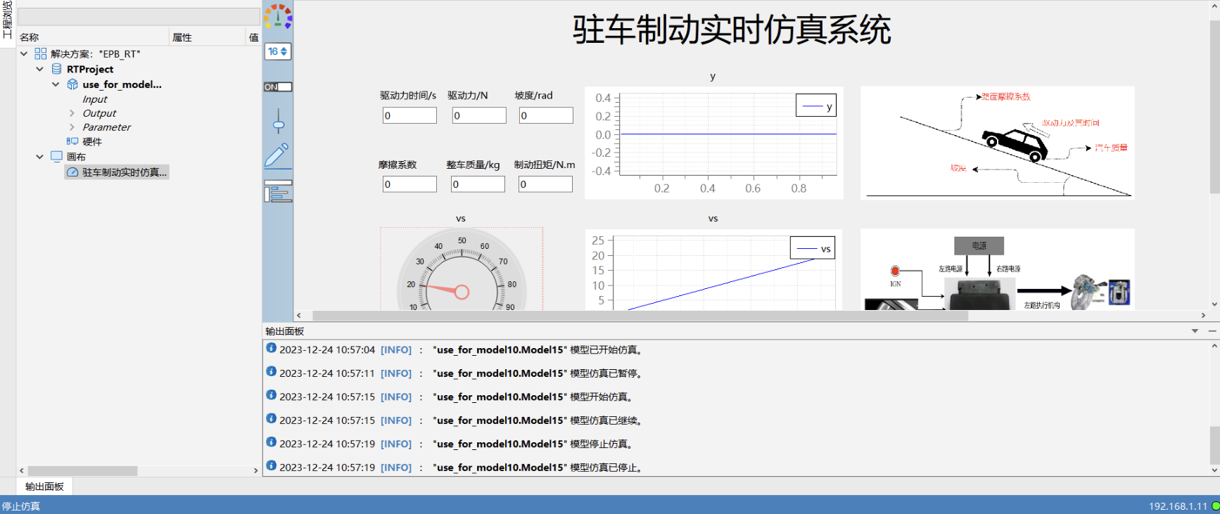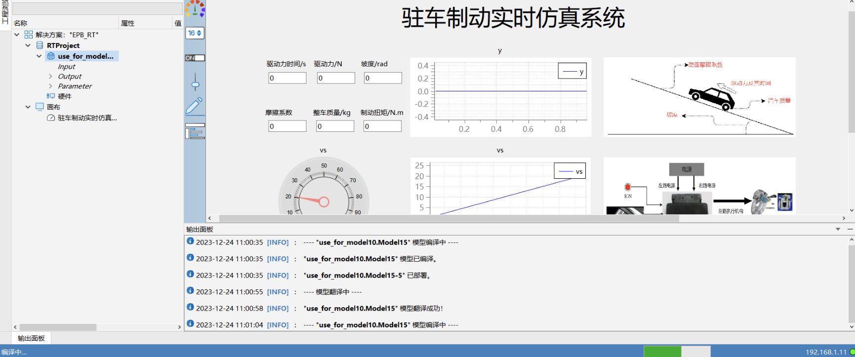 当成功建立通信后,即可继续部署。将 EPB_PBS 半物理模型进行编译,生成可执行程序,并下载至实时机中。可以在输出面板查看各种通知消息。