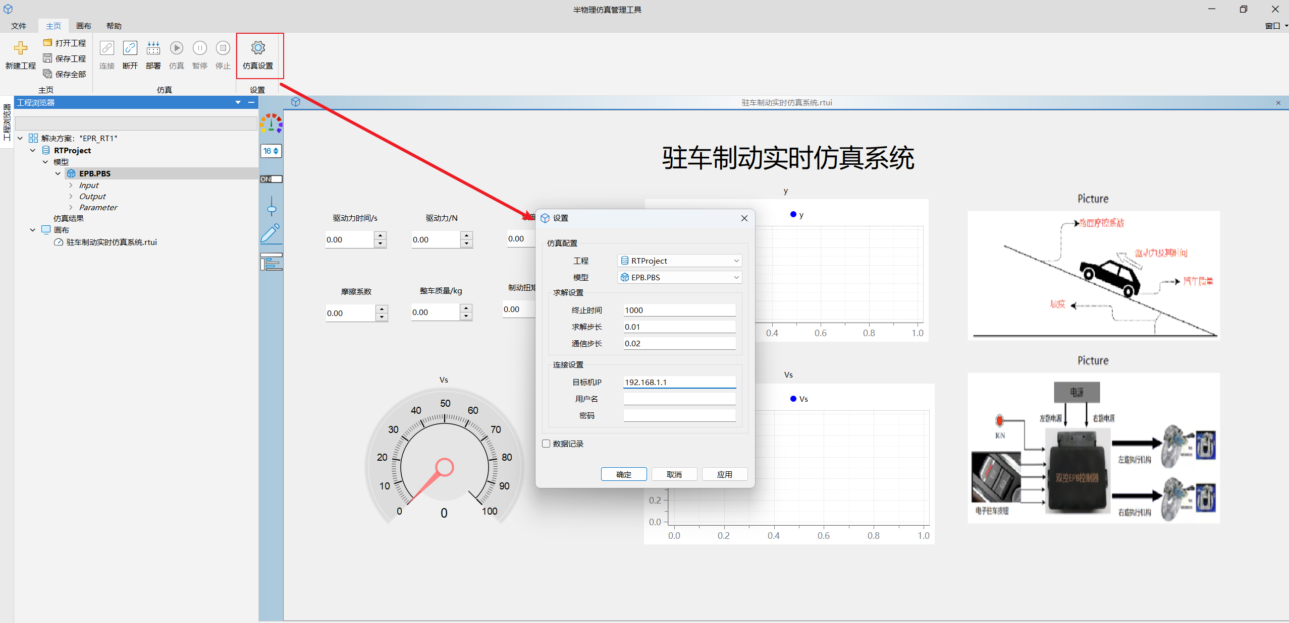 半物理仿真管理工具(Sysplorer Real Time,下文简称 RT )是面向半物理仿真工程的专用上位机软件。它以真实物理模型为基础,减少虚拟系统与真实设备之间的误差,在系统开发初期到验证阶段,引入实时软硬件环境进行仿真。本文介绍了使用 RT 工具箱,将 EPB 半物理模型转换为 C 代码编译部署到实时目标机中,进行实时仿真控制及监测的方法。