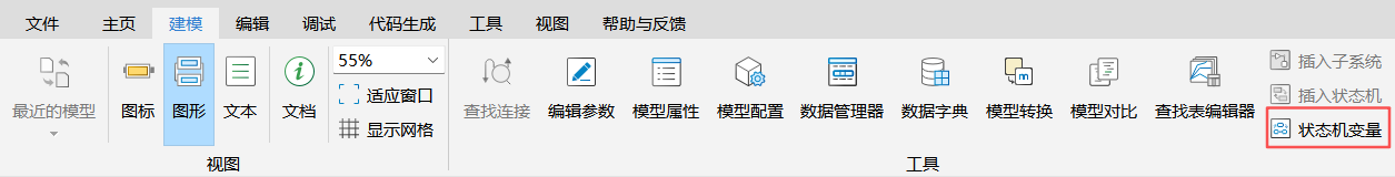 状态机建模界面选中建模-状态机变量,打开状态机变量面板。