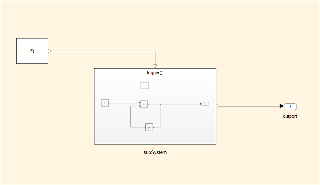 在子系统中放入触发模块 trigger,并将触发类型选择为 functionCall。