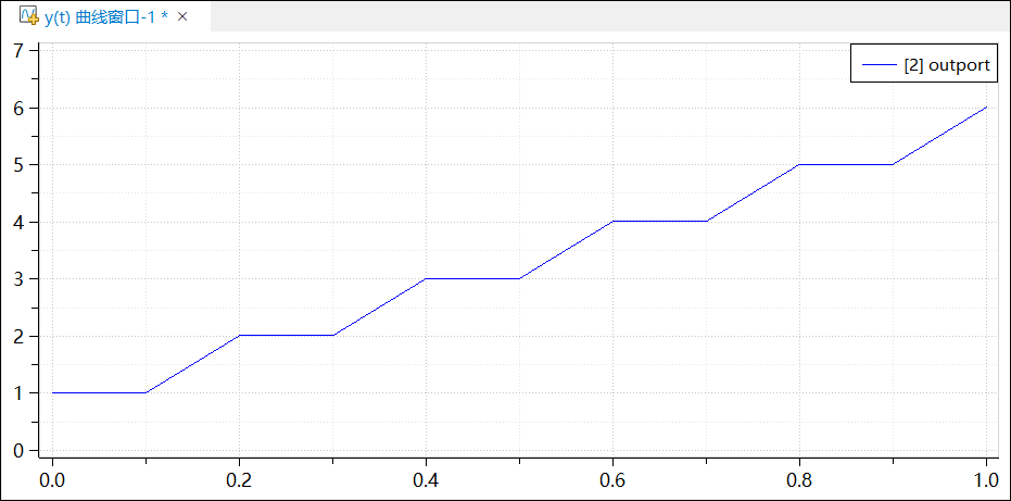 模型的仿真步长设置为 0.1S,仿真时间设置为 1S,Function-Call Generator 模块设置为 0.2S,代表每 0.2S 调用一次。 预期结果 1S 内该子系统一共被调用 6 次,分别在 0S、0.2S、0.4S、0.6S、0.8S、1S 处生成结果 1、2、3、4、5、6。