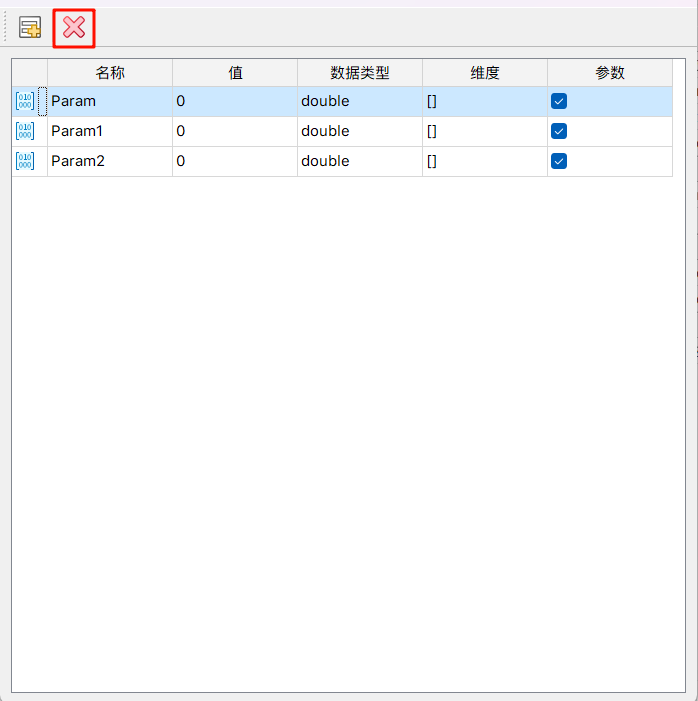 通过单击界面左上方的删除按钮,可对选中的参数进行删除。