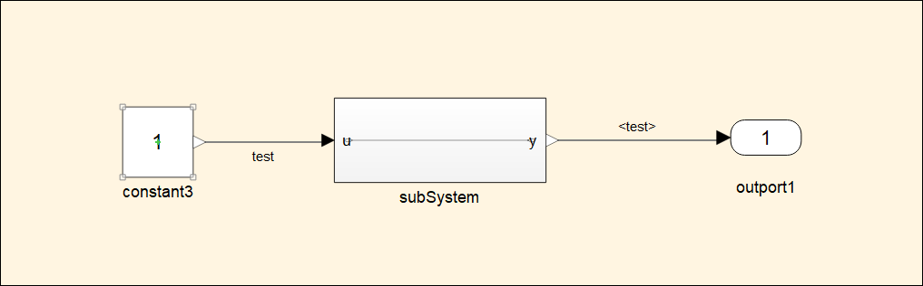 Sysblock 使用 Constant 模块的输出信号的信号名称test。Subsystem 模块输出信号的传播的信号标签是<test>。