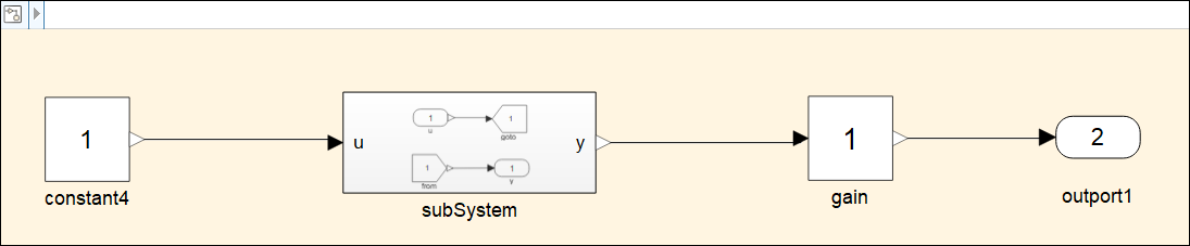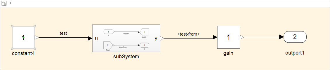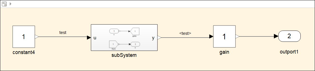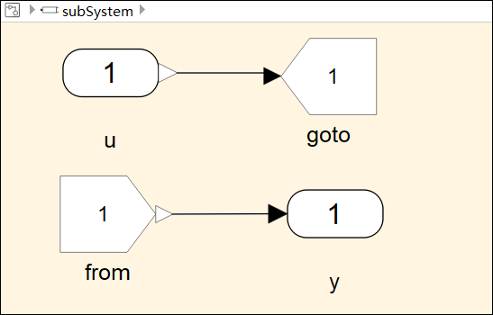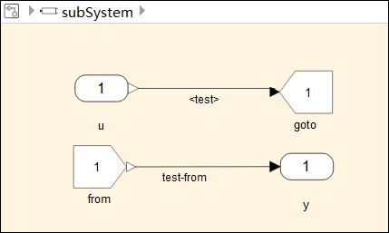 假设您在 subSystem 模块中为 u 模块的输出信号启用了信号标签传播,并设置 from 模块的输出信号指定了信号名称 test-from,如下所示。