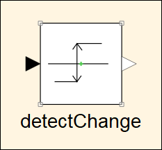 DetectChange 模块确定输入信号是否不等于其上一个值。初始条件为上一个输入 U/z 的初始值。