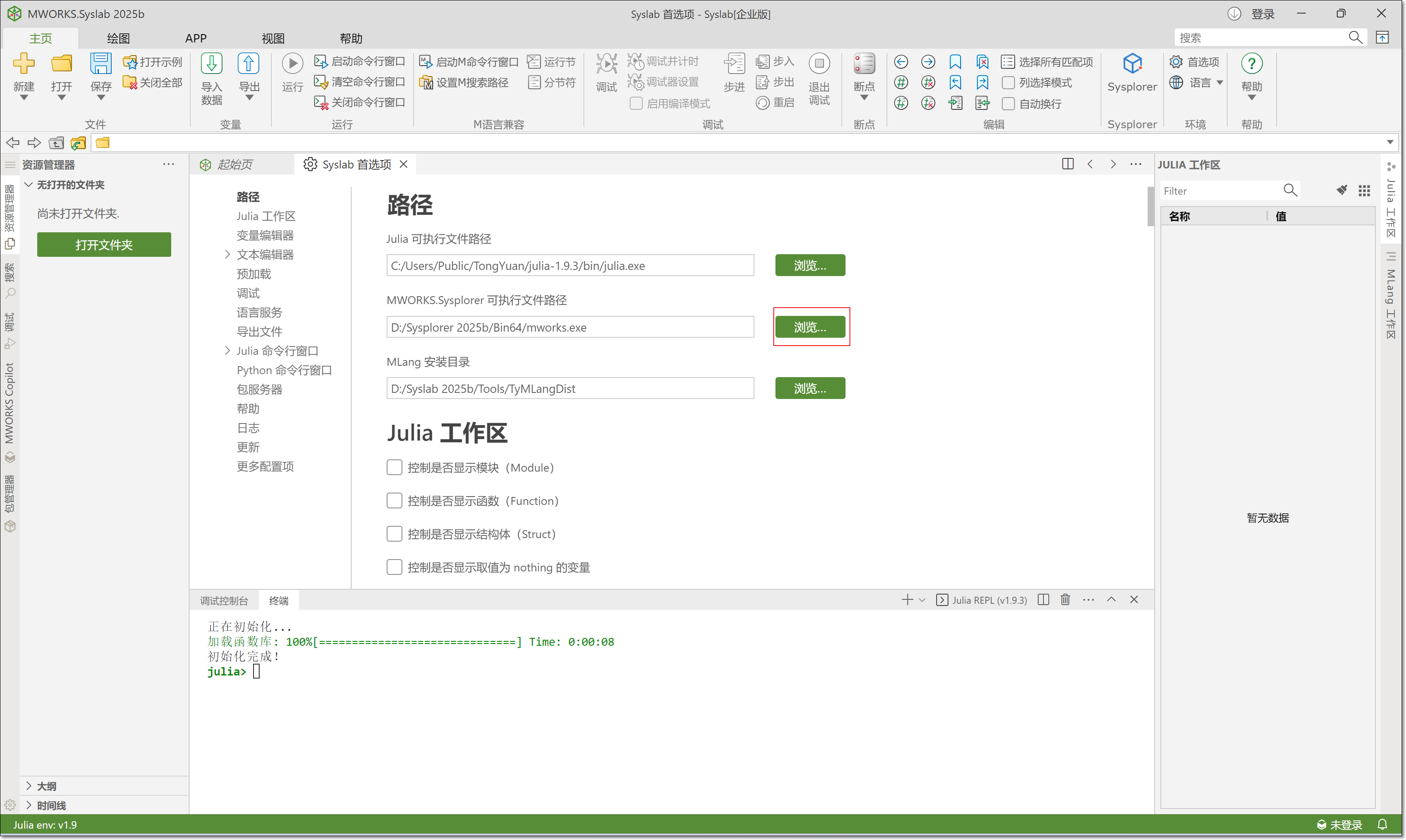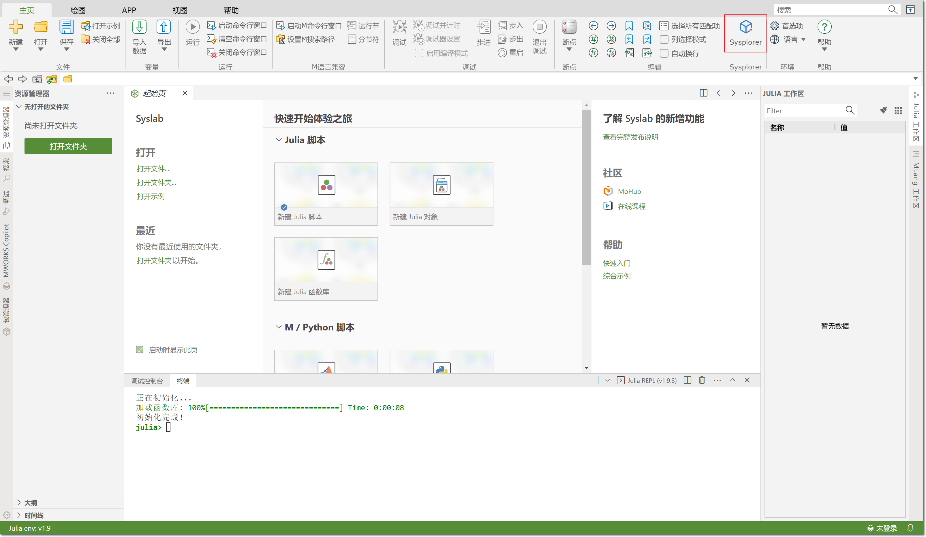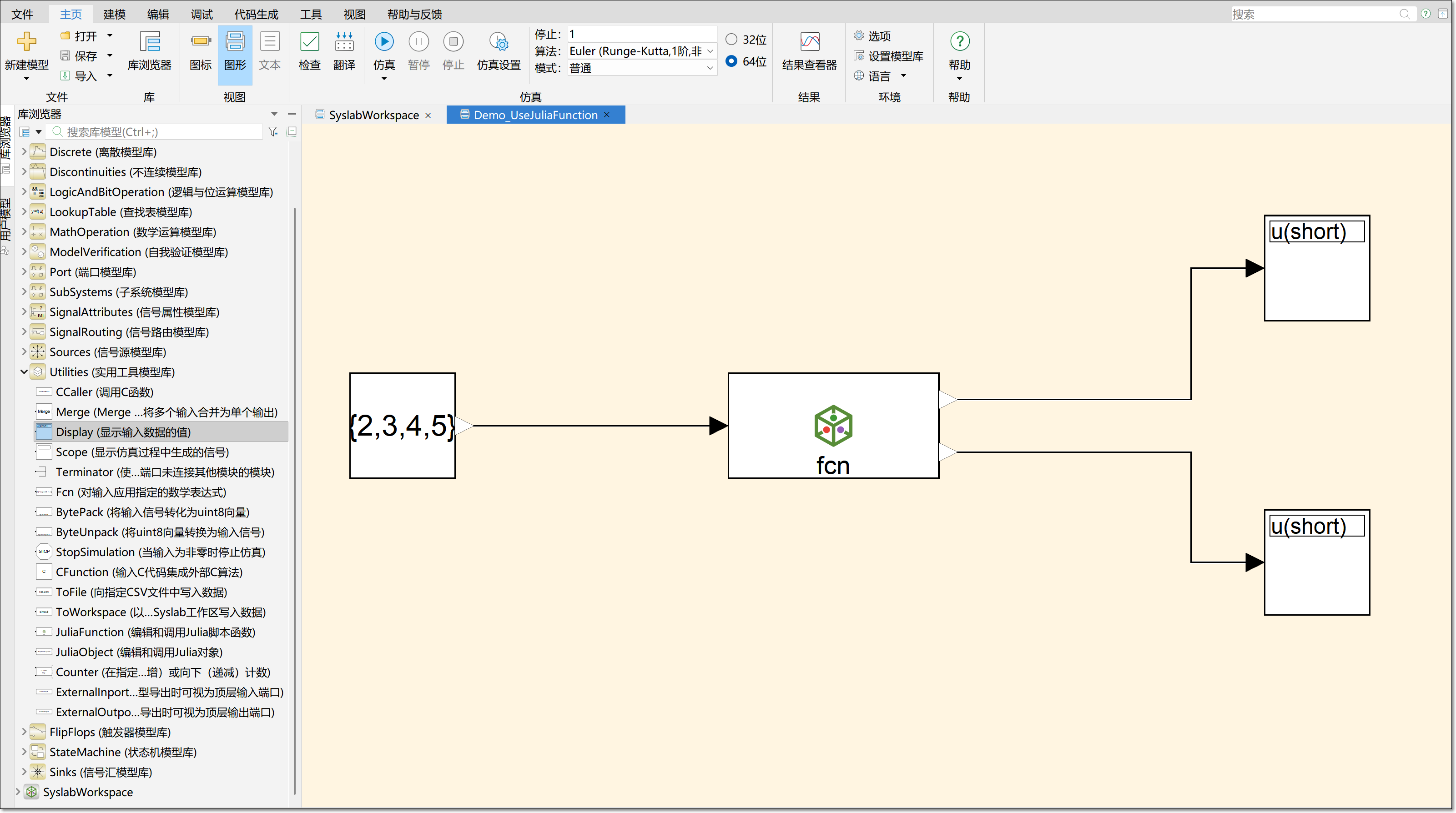 本次仿真因为需要 JuliaFunction 模块,所以需要从 Syslab 中打开 Sysplorer。